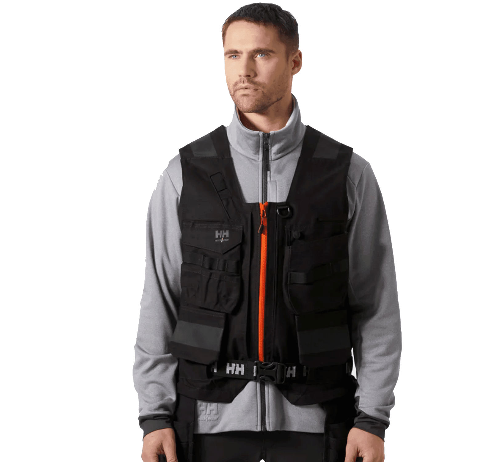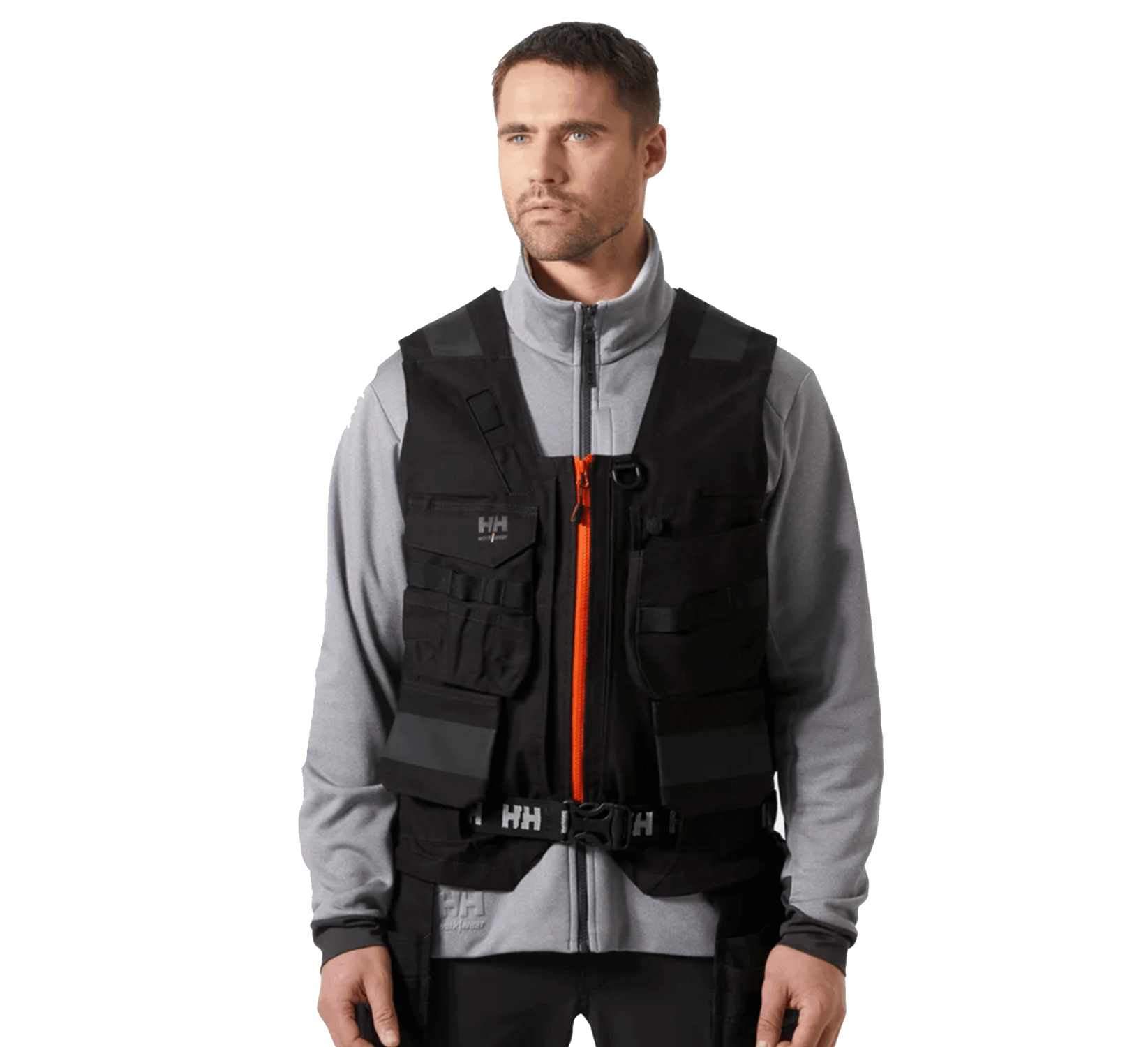 Verktøyvester som organiserer utstyret og avlaster skuldrene gjennom arbeidsdagen. Smarte, lett tilgjengelige lommer, hammerholdere og festepunkter – med forsterkede soner der det trengs.